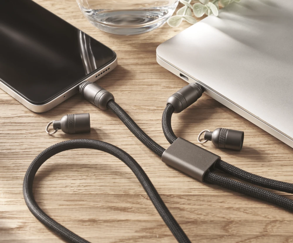 Le câble multi-connecteurs est devenu un best-seller : léger, pratique, compatible avec tous les appareils, il symbolise l’efficacité. Certains modèles se personnalisent par gravure lumineuse pour un effet premium.