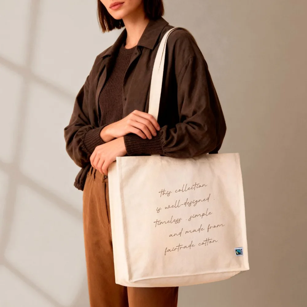 Le tote bag reste la star. Léger, réutilisable, personnalisable en sérigraphie ou en transfert numérique, il incarne la consommation responsable. Il existe désormais en coton bio, toile de jute, rPET (bouteilles recyclées), voire en chanvre.